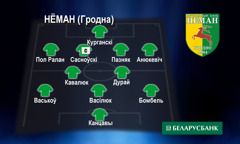 Склад «Нёмана»: Курганскі - Бебе, Сасноўск, Пазняк, Анюкевіч - Кавалюк, Дурай - Васькоў, Васілюк, Бомбель - Канцавы. Запасныя: Жураў - Вяргейчык, Кавалёнак, Журневіч, Носко Аляксей, Лешка, Савіцкі.