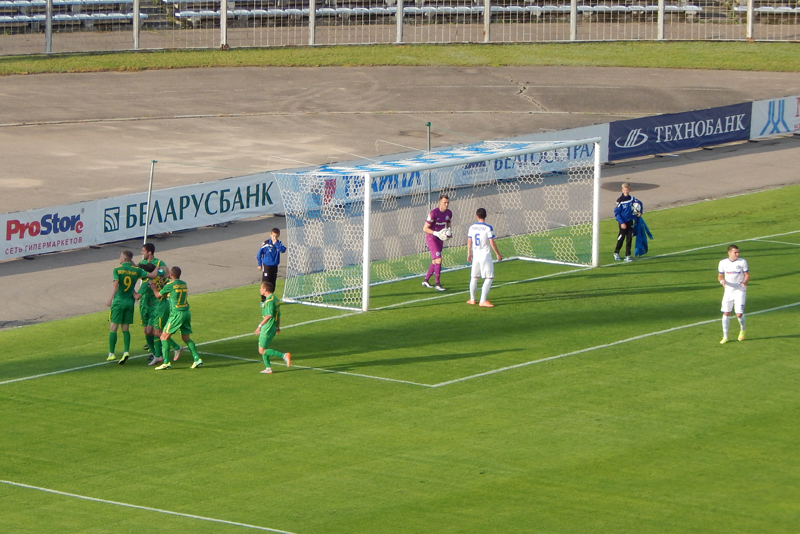 Завалілі Савіцкага у кута поля. Кавалюк падае, мяч абаронцы выносяць - Васькоў слёту б'е і трапляе ў створ. Гутар зноў выразна фіксуе мяч