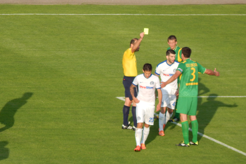 Яшчэ адна картка паказаная гродзенцам. На гэты раз груба ззаду ссек дынамаўца Кавалюк. Не спраўляюцца жоўта-зялёныя за перамяшчэннем мінчан, адсюль і парушэнні.