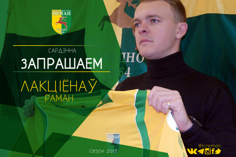 Сёння Раман Лакціёнаў падпісаў працоўную дамову з «Нёманам». Кантракт з нападнікам разлічаны да канца сезона 2017 года.