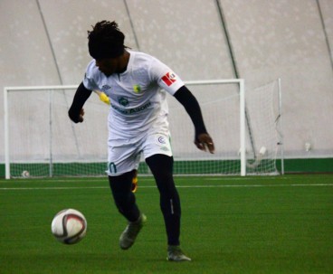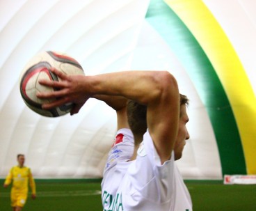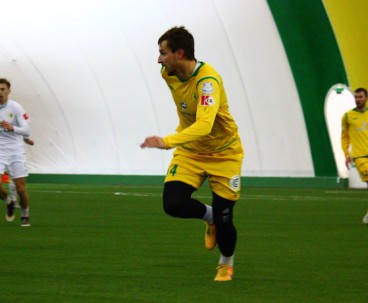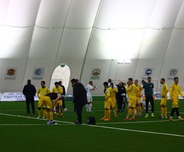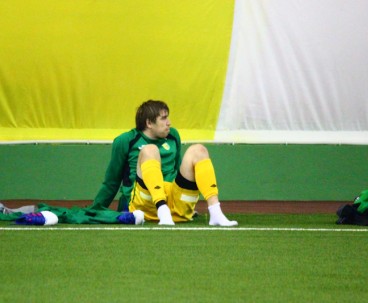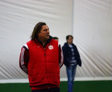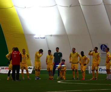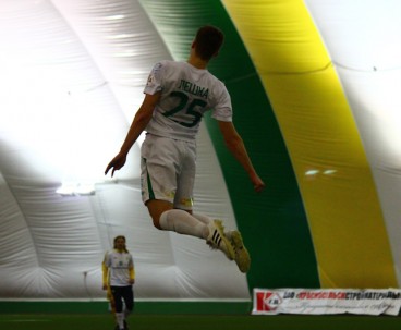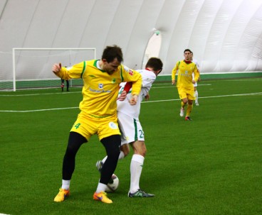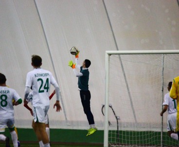 Субботним утром в манеже команда провела необычный двухсторонний матч. От обычной тренировки такое мероприятие отличалось тем, что на матче присутствовала судейская бригада, команды приоделись в форму, а игра длилась не 90 минут, а 75 – три тайма по 25 минут каждый. Глядя на составы, с большой долей вероятности можно было определить, в какой из команд были собраны условно первые номера. Таковой являлась жёлтая команда.