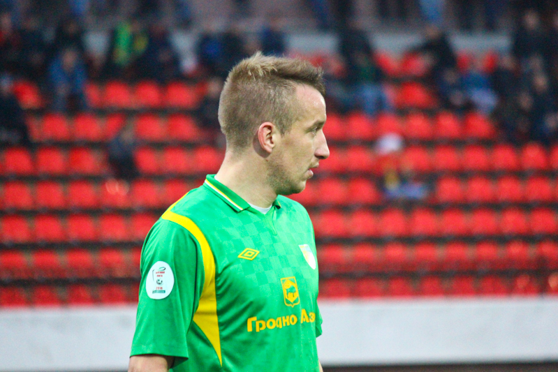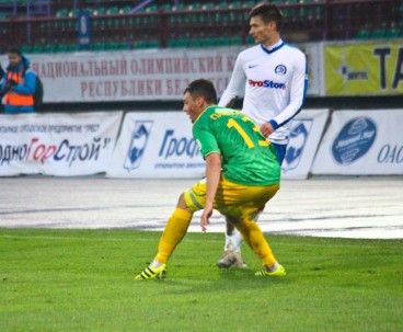 Стартовые минуты встречи показали, то ни одна команда, ни вторая в обороне отсиживаться не собирается. Отрадно, что темп игре задала гродненская команда, с первых минут смело пойдя на ворота соперника. Однако, уже через шесть минут после начала встречи хозяева оказались в роли догоняющих. Как нам кажется, не без помощи арбитра. Мы говорим, что контакт Космынина и Хващинского несомненно был – наш защитник подтолкнул рукой нападающего минчан. Но тянул ли этот фол на пенальти? Была ли какая-либо опасность у ворот Курганского? А если Шимусик так чтит букву закона, то почему не поставил пенальти в ворота минчан несколькими минутами ранее, когда Капленко толкнул в спину Бомбеля? Вопросы без ответа. Тем не менее, наши ребята отыгрались уже через четыре минуты после того, как Корытько реализовал пенальти. На дальний удар без раздумий решился Рудик, Нойок подставил голову под летевший мяч и изменил тому траекторию полёта. Вратарь минчан уже рванул влево, поэтому был бессилен чем либо помочь. Мяч затрепыхал в сетке ворот минчан – 1:1.
