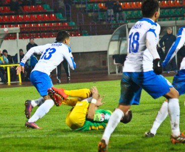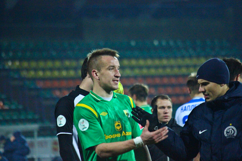 67-я минута: находясь в штрафной через себя бьёт Рожок – мяч летит мимо ворот.