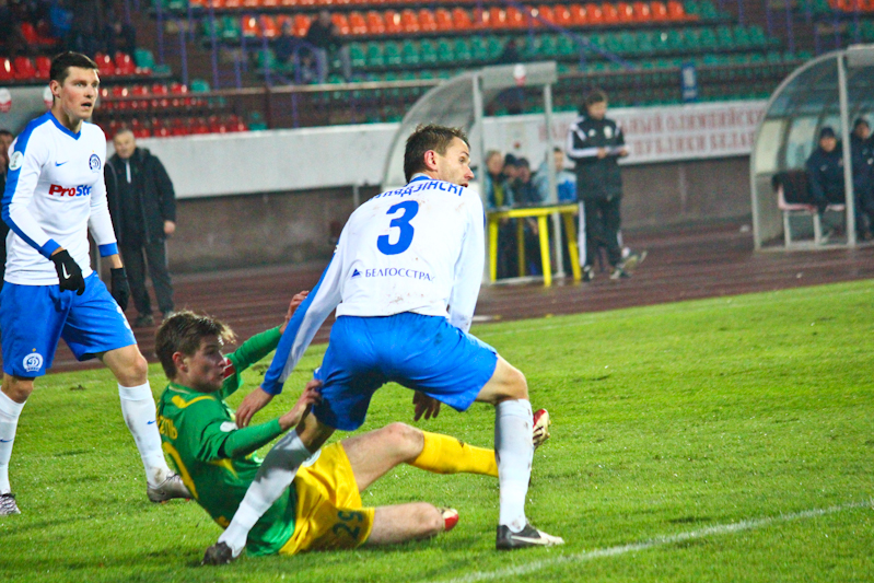 73-я минута: очередной штрафной у ворот минчан. Рожок левой подаёт на дальнюю штангу, Космынин в падении бьёт головой по воротам – Игнатович успевает среагировать и вновь спасает «Динамо»