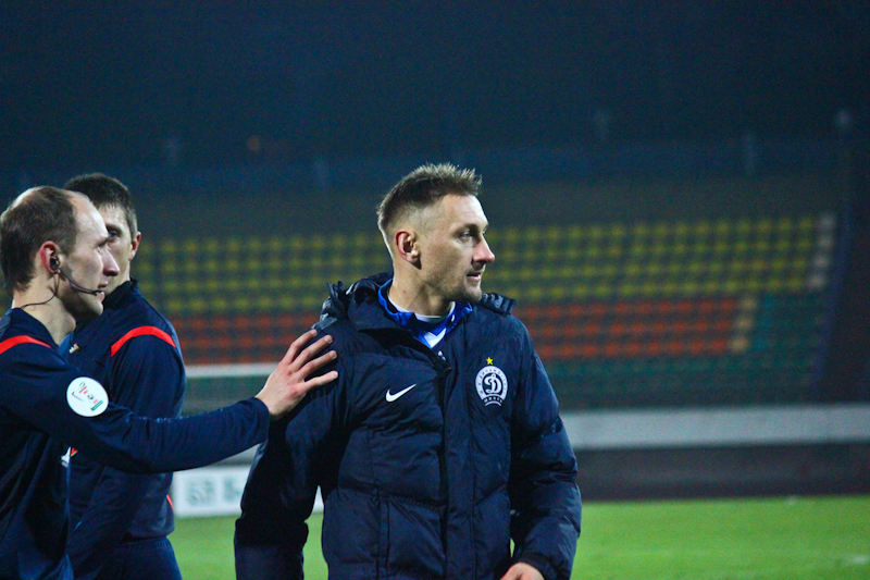 А что же «Динамо», спросите вы? Минчане, скорее всего, играли по счёту. Прижались к воротам, а когда гродненцы поймали кураж, отодвинуть игру от своих ворот уже не смогли. Ни постоянные подсказки тренерского штаба, ни замены, на ход происходящего никак повлиять не смогли. Единственный опасный момент у ворот «Немана» после перерыва создали сами хозяева. За минуту до окончания основного времени Курганский рукой вбросил мяч на Рудика, который находился рядом со штрафной. Филипп решил сделать поперечную передачу, но ошибся. Рассадкин мяч перехватил, Курганский бросился ему в ноги и сбил его, а мяч на линии ворот остановил защитник. Свисток судьи промолчал… Шимусик свои решением так разозлил гостей, что те практически всей скамейкой запасных выскочили на поле. В итоге красную карточку судье всё же пришлось показать, правда не игроку гродненского клуба, как настаивали минчане, а их главному тренеру. Последний штурм хозяев Боровский наблюдал уже не с лавки запасных.
