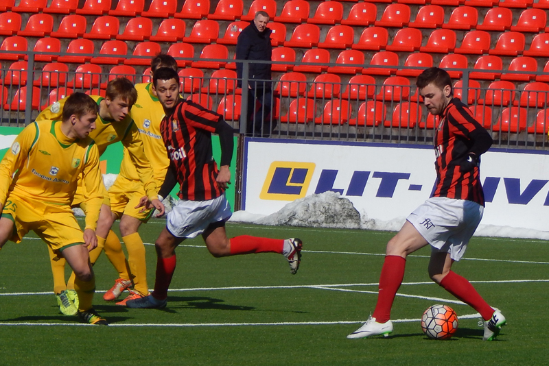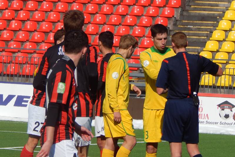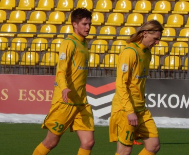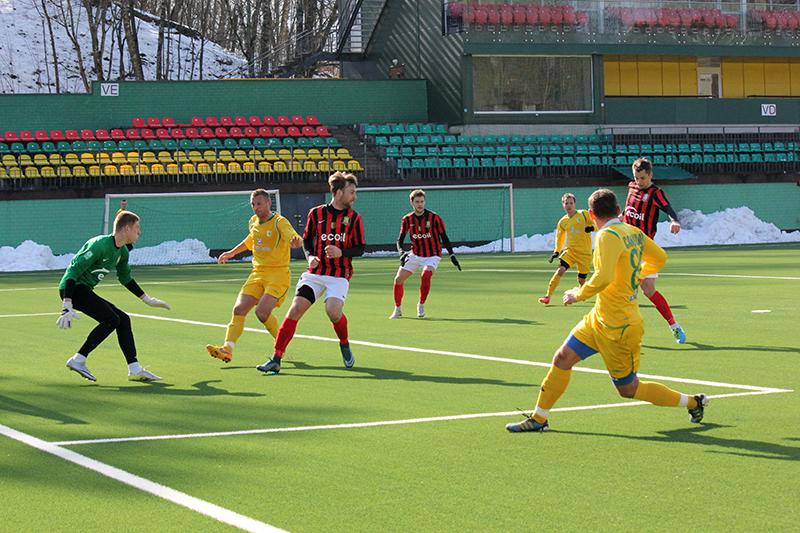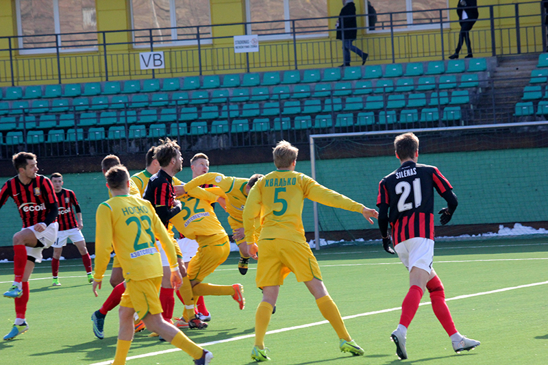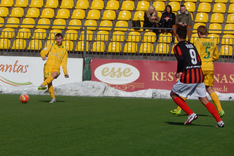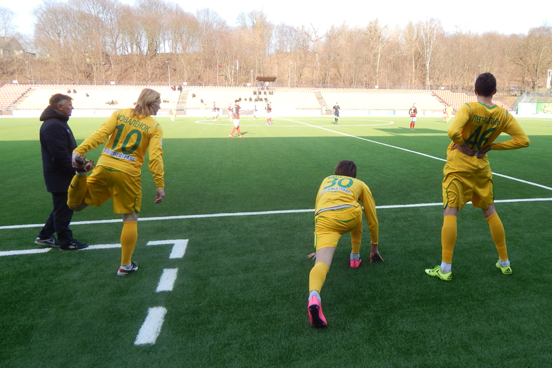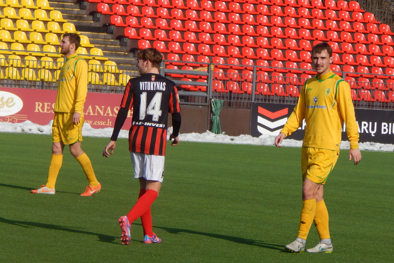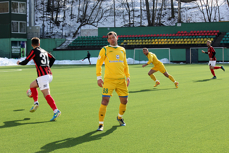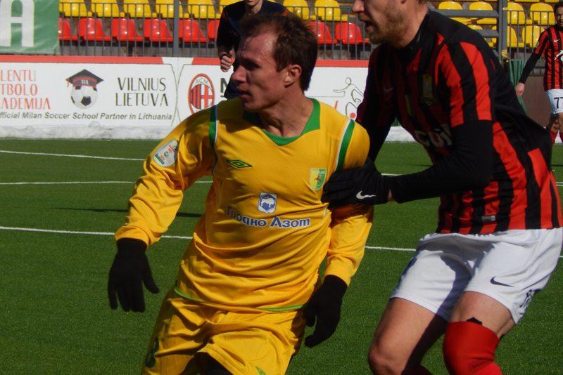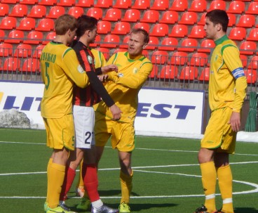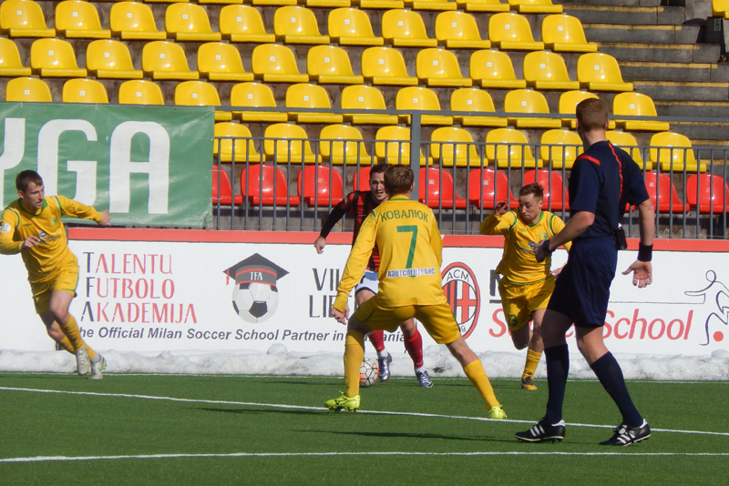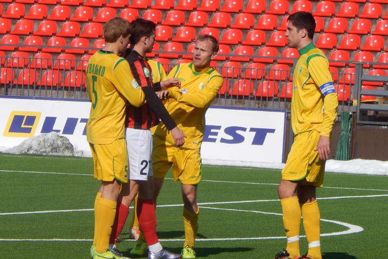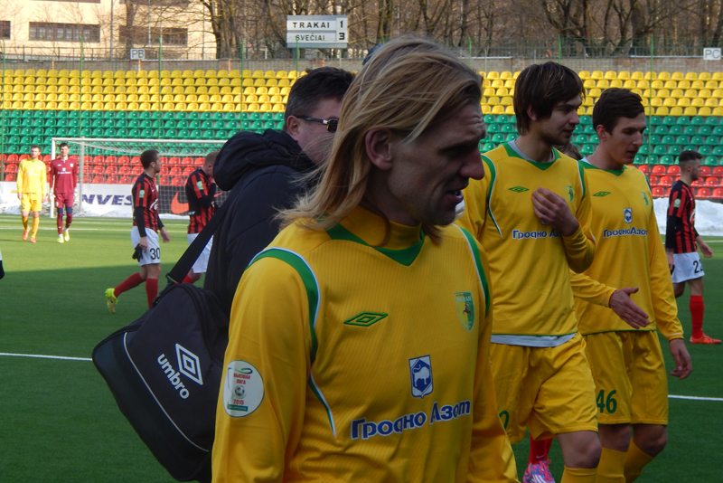 Не смогла и наша команда сыграть составом, который наигрывается как основной. В защитной линии отсутствовал Александр Позняк, который вызван в молодёжную сборную Беларуси. Отправился в Украину решать свои вопросы с документами на заявку опорник Тарас Дурай, а у новичка команды вратаря Владимира Журова ещё не готова виза. Тем не менее, привезённый Солодовниковым в Литву состав выглядел боевым.