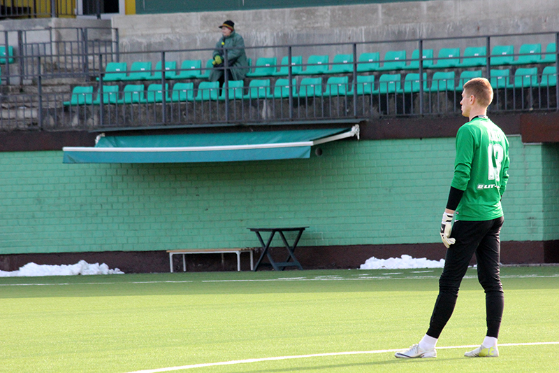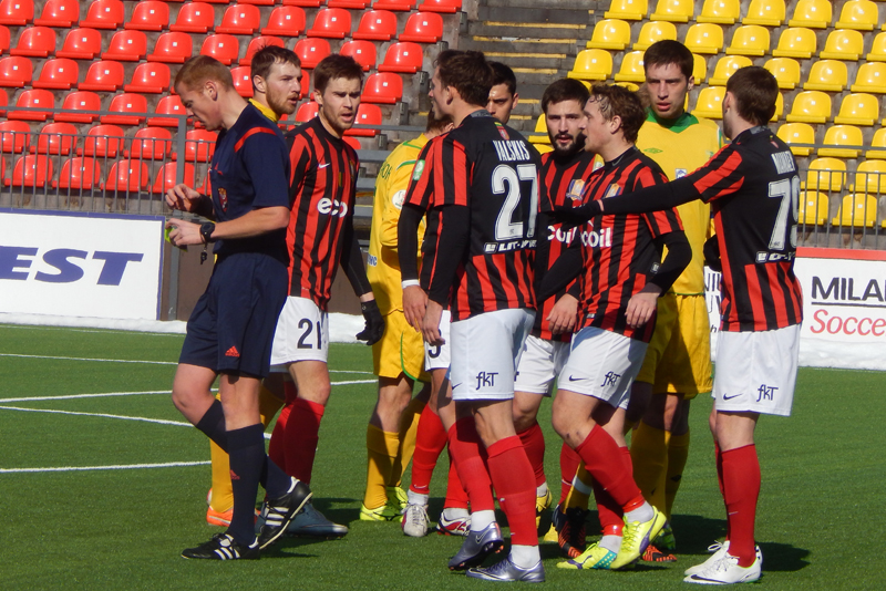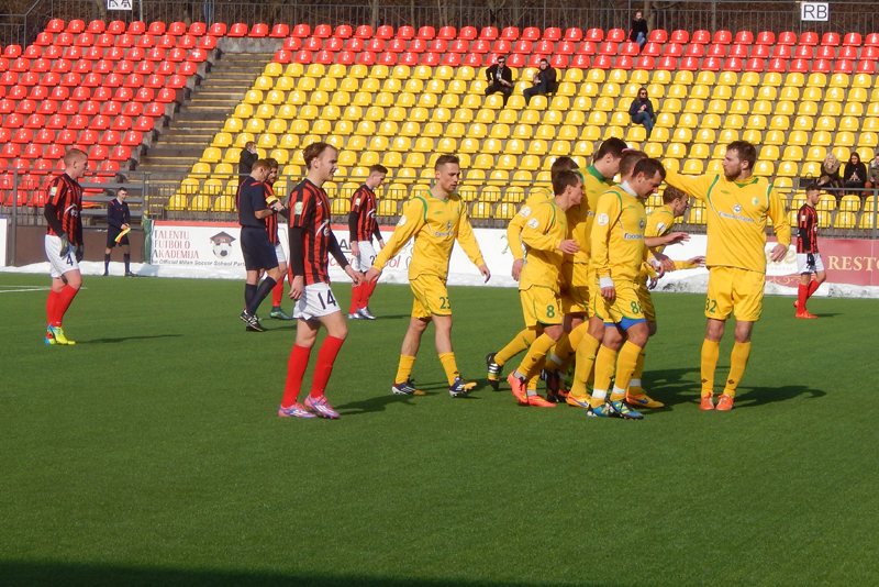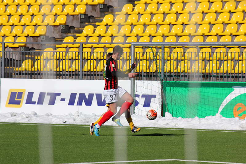 Диктор стадиона бодрым голосом объявил, что счёт в матче открыт и назвал фамилию обидчика гостей. Причём сделал это только на литовском языке. Стало интересно, будут ли объявлять голы в исполнении наших ребят, ведь протокол матча не заполнялся и сделать это будет крайне тяжело.