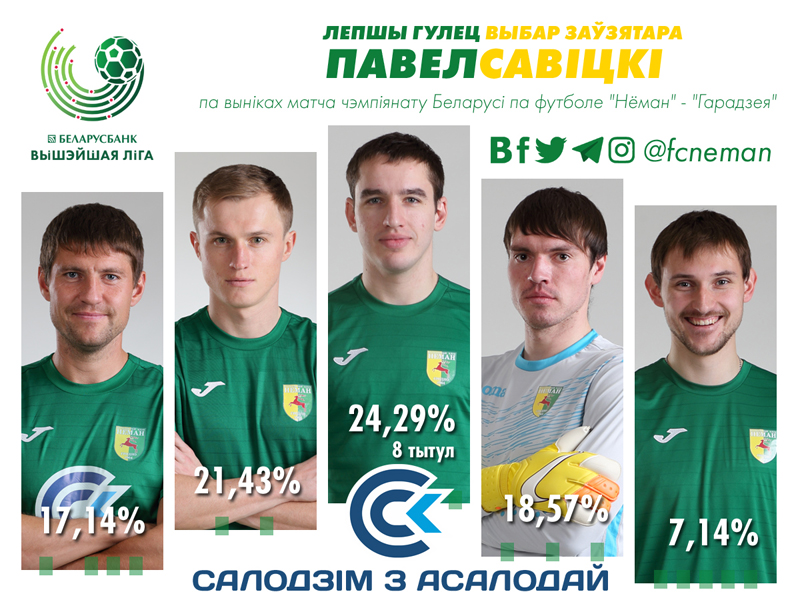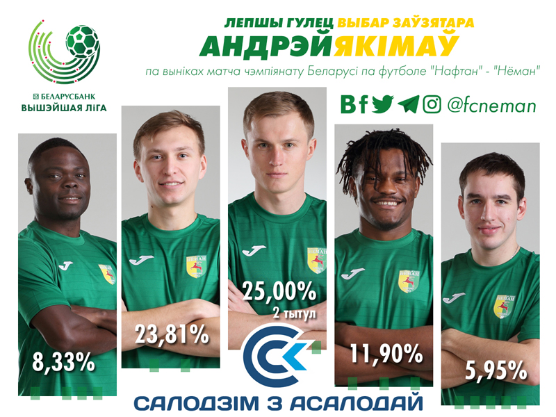 Лучший игрок матча «Нафтан» — «Неман» (номинанты): 1. Якимов (25,00%) - 2. Климович (23,81%) - 3. Абуна Ндзана (11,90%).