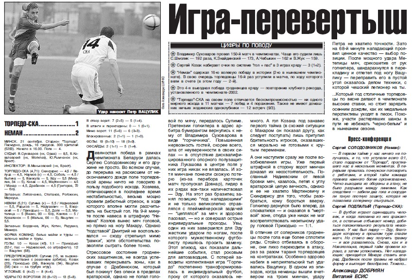 ТОРПЕДО (Минск) — НЕМАН (Гродно) – 0 : 1 (0 : 0)