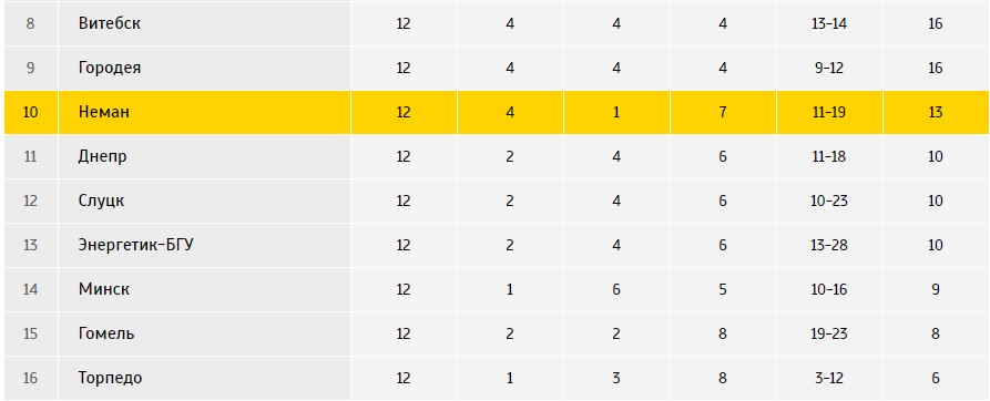ТОРПЕДО (Минск) — НЕМАН (Гродно) – 0 : 3 (0 : 3)
