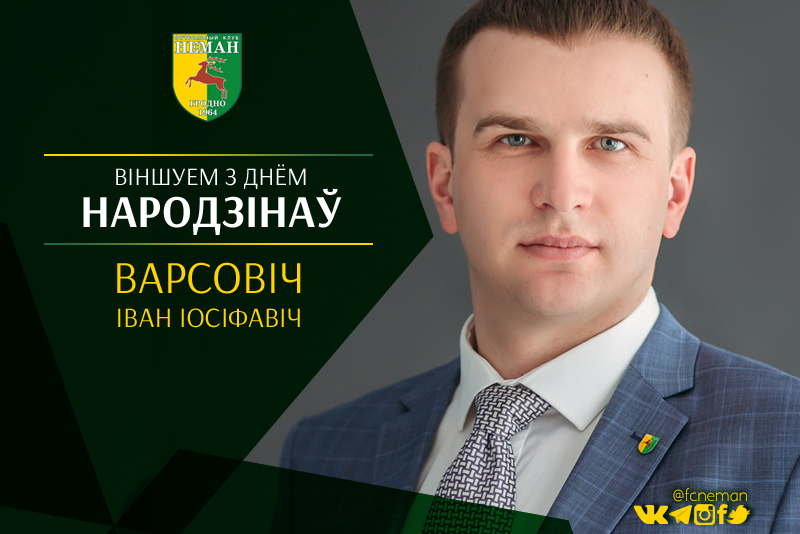 Коллектив футбольного клуба «Неман» - тренеры и игроки всех команд, сотрудники клуба, школы и других подразделений, от всего сердца поздравляет председателя клуба Ивана Иосифовича Ворсовича с Днём рождения!