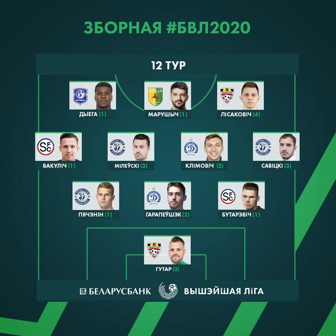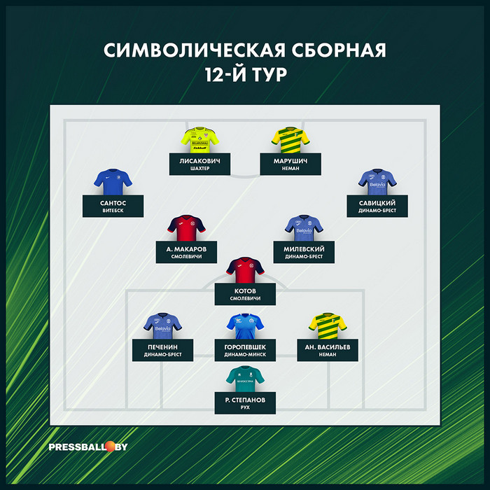 В сборную тура, которую составляет главная спортивная газета страны «Прессбол», во второй раз (ранее - в 3 туре) был включён защитник нашего клуба Андрей Васильев. Кроме него в сборную 12-го тура был включён также Зоран Марушич, который оказался в списке одиннадцати лучших по итогам игрового дня впервые. помимо сербского нападающего, который попал в подобную команду впервые, был включен и наш защитник Андрей Васильев.