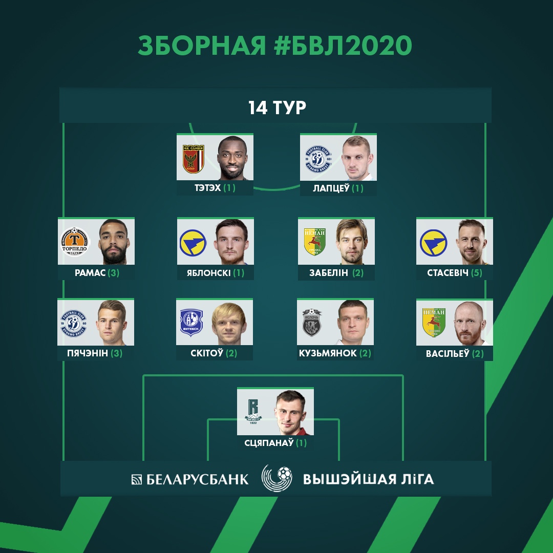 Кроме того, Забелин включен в символическую сборную 14-го тура чемпионата Беларуси по версии издания «Прессбол».