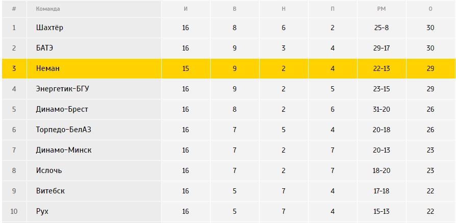 Перед очной встречей «Неман» находится на 3 месте, а «Витебск» расположился на 9 строке в турнирной таблице.