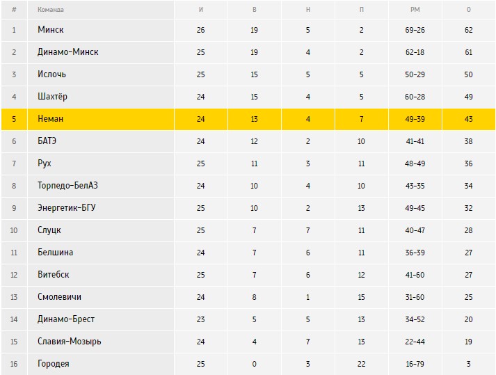 За пять туров до финиша гродненцы не утратили возможности завершить сезон в тройке призёров. До бронзового места всего семь очков и один матч в запасе. Напомним, что жёлто-зелёные до сих пор не сыграли матч против дубля жодинского «Торпедо».