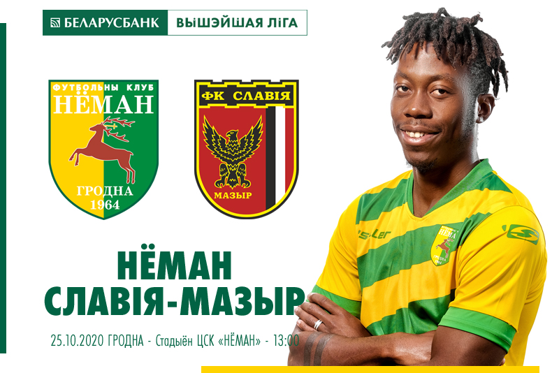 В матче 27-го тура «Беларусбанк — чемпионата Республики Беларусь по футболу среди команд Высшей Лиги» гродненцы дома принимают мозырскую «Славию». Матч пройдёт 25 октября на главном поле ЦСК «Неман» без зрителей и начнётся в 13:00.