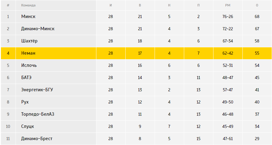 НЕМАН: (к) Малиевский - Кулеш, Лешко, Пархоменко, Яцкевич, Иванов, Копытич, Черивханов, Больгерт, Сучков, Шигайбаев. Запасные игроки: Агапов - Таращик, Онищик, Соловьёв, Ошурко, Матюшенко, Кравцов.