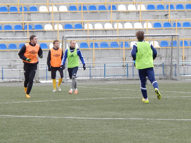 А пока желто-зелёные отходили от зимней спячки, гранитовцы, проводящие свой третий спарринг, успели отпраздновать взятие ворот. Однако к центру команды не пошли, потому, как свое веское слово сказал главный судья. К слову сказать, ошибки в протоколе нет никакой – матч обслуживала бригада из двух арбитров. Именно поэтому им обоим пришлось работать в поле. Главным был все же Голодухин, хотя право свистеть было у обоих. Именно Голодухин и не защитал взятие ворот, заметив положение вне игры у пробившего головой Луцевича.