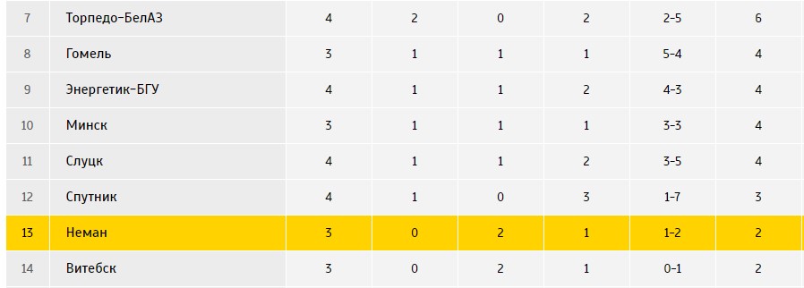 Все матчи «Немана» в чемпионате 2021: «Витебск» - 0:0, «Слуцк» - 1:1 (Джигеро), «Динамо-Брест» - 0:1.