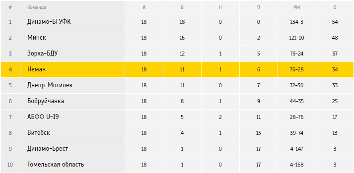Диспозиция перед встречей (полная таблица): «Неман» – 4 место (34 очка, 76-28), «Витебск» – 8 место (13 очков, 39-74).