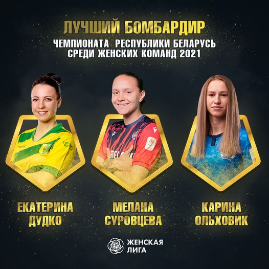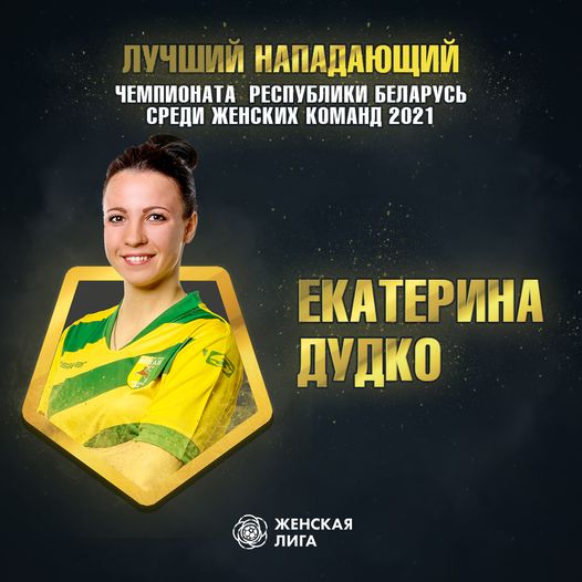 Второй сезон подряд лучшим нападающим женского чемпионата была признана Екатерина Дудко. Капитан и главный тренер нашей женской команды получила в этот вечер и вторую свою статуэтку. Екатерина вместе с Кариной Ольховик из «Динамо-БГУФК» и Меланой Суровцевой из «Минска» разделила лавры лучшего нападающего турнира. Все три нападающие забили в турнире по 33 мяча.
