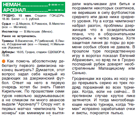 «Неман» – «Арсенал»: день восьмой Вернуться к списку