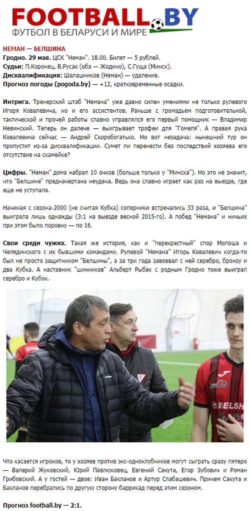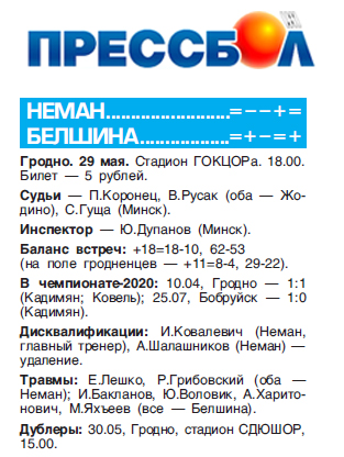 - НЕМАН — БЕЛШИНА – 2 : 2 (1 : 0)