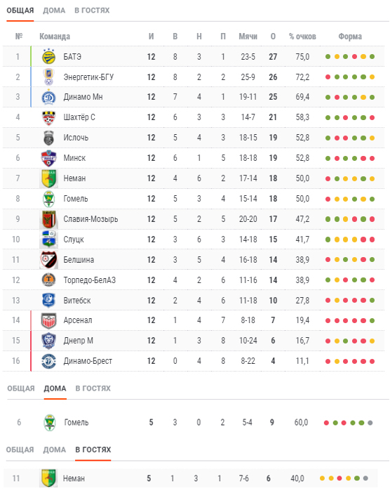 Оборона: «Неман» и «Гомель» пропустили по 14 мячей в 12 играх (5-6 место в лиге по пропущенным мячам, в среднем команды пропускают 1,17 мяча за одну игру).