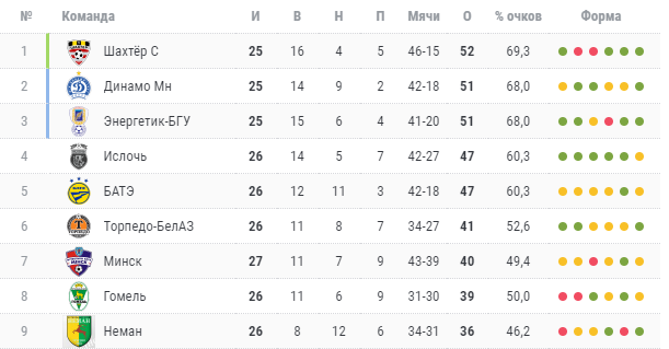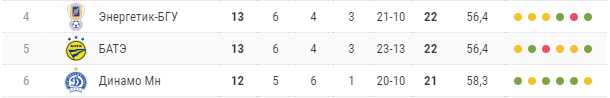 Дома БАТЭ набрал 22 очка из 39 возможных или 56,4% очков. Это пятый результат в лиге, в то время как наша команда дома набрала 25 очков или 64,1% от возможного (3-е место в лиге).