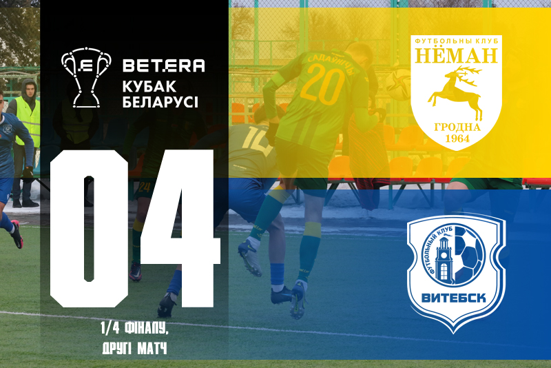 Сегодня в Гродно состоится ответный матч 1/4 BETERA Кубка Беларуси по футболу «Неман» – «Витебск». Игра пройдёт на искусственном поле стадиона ГОКЦОР, начало встречи в 16:30 (вход свободный).