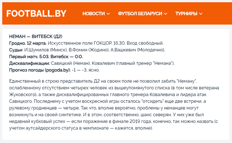 Более подробно о соперничестве двух команд можно посмотреть перейдя по ссылке: «Неман» vs. «Витебск»