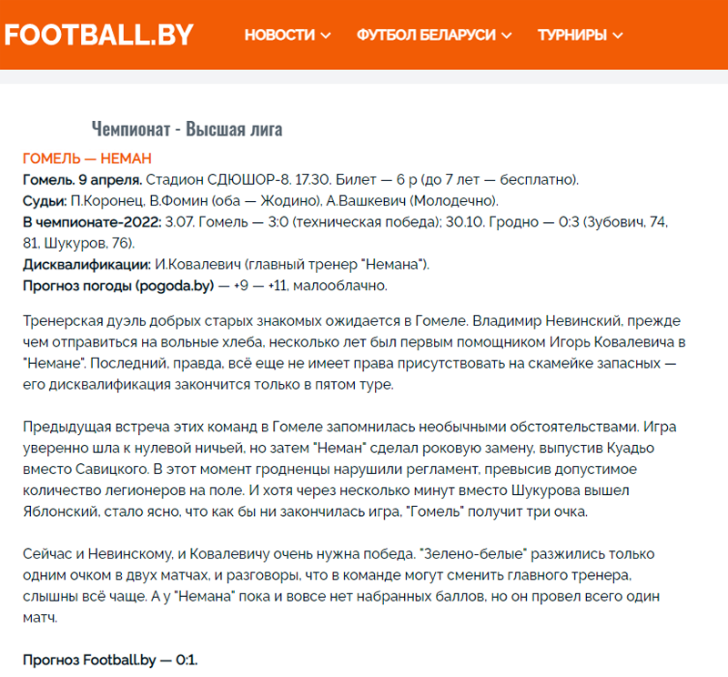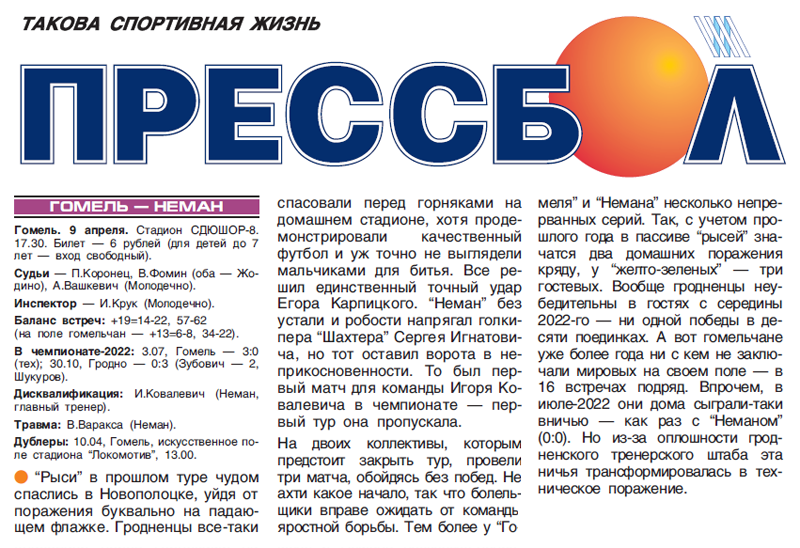 Более подробно о соперничестве двух команд можно посмотреть перейдя по ссылке: «Неман» vs. «Гомель».