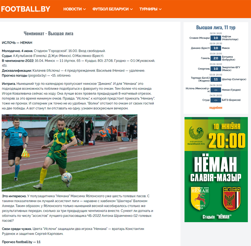 Встреча «Ислочь» – «Неман» начнётся в 16:00 и будет показана в эфире и в интернете — «Беларусь 5» и «Беларусь 5 интернет» (прямое включение в 15:50).