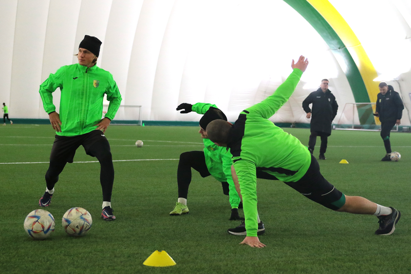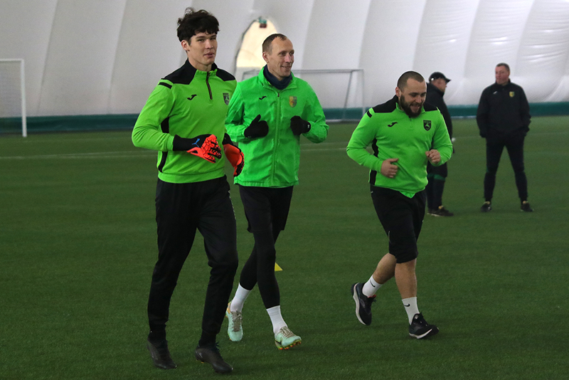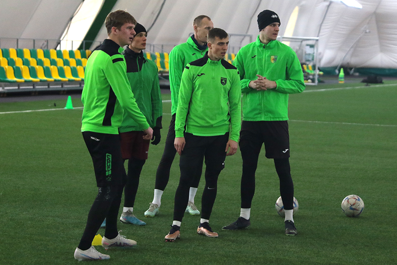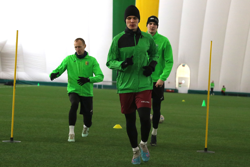 Без пятнадцати минут двеннадцать на поле футбольного манежа вышли 24 футболиста: вратари – Кирилл Вейдыгер, Максим Белов, Артур Малиевский и Сергей Курганский, защитники – Александр Анюкевич, Иван Садовничий, Сергей Карпович, Алексей Легчилин, Максим Яблонский и Егор Пархоменко, полузащитники – Алексей Дайнеко, Роман Папарига, Антон Сучков, Владислав Варакса, Игорь Костров, Константин Кучинский, Михаил Козлов, Андрей Якимов, Павел Савицкий и Юрий Павлюковец, нападающие – Егор Зубович, Максим Кравцов, Альберт Копытич и Артур Сагитов. К уже подписавшим контракт присоединились раздумывающие о его продлении, вернувшиеся из аренды, а так же потенциальные новички, ранее не выступавшие за наш клуб.