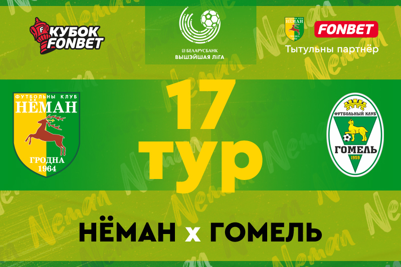 В матче 17-го тура «Беларусбанк — чемпионата Республики Беларусь по футболу среди команд Высшей Лиги» в Гродно встретятся команды «Неман» – «Гомель». Встреча пройдёт в воскресенье на главной футбольной арене города и начнётся в 19:30.