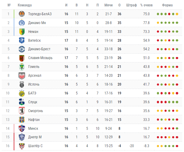 | 3 | БАТЭ | -:- | 1:3 | ХХХ | 3:1 | 1 | 0 | 2 | 4 - 5 | 3 |