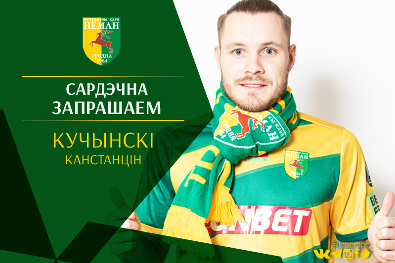 Третьим новичком клуба стал Константин Кучинский (15.07.1998, рост – 172 см, вес – 70 кг), подписавший трудовое соглашение с «Неманом» до конца нынешнего сезона. Напомним, что перед началом прошлого сезона Константин уже приезжал на просмотр в наш клуб, однако стороны не договорились и предыдущий визит в Гродно подписанием контракта не увенчался.