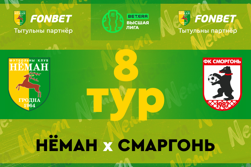 Матч 8-го тура «Бетера — чемпионата Республики Беларусь по футболу среди команд Высшей Лиги» между командами «Неман» – «Сморгонь» пройдёт в воскресенье в Гродно на главной футбольной арене города, начало встречи в 18:00.