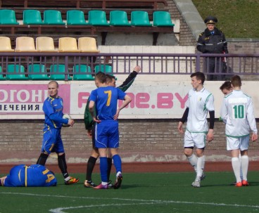 Сегодня гродненская молодежь набивала шишки с представителем Первой Лиги из Слонима. И если до перерыва команды имели практически равные полушансы на успех, то после антракта и последовавших в нашей команде замен, наши гости чувствовали себя достаточно вольготно. И если бы не Роман Фомин, который в перерыве сменил в воротах Сергея Курганского, то домой слонимская дружина поехала бы имея крупную победу. Пропустив на 63-й минуте мяч, наши ребята занервничали и позволили слонимчанам вести позиционные атаки, разыгрывать мяч до верного и опасно угрожать воротам Романа. Однако наш голкипер сыграл сверхнадежно, ликвидировав несколько выходов один на один, а также не позволил отличиться сопернику с одиннадцатиметровой отметки.