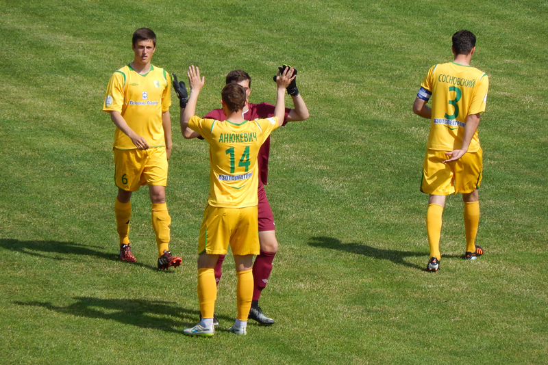 В начале второго тайма хозяева активизировались и впервые подали угловой. Мяч всё больше стал гостить на половине жёлто-зелёных. На 70-й минуте супер момент не использовал Лаптев, промахнувшись по мячу в самый неподходящий момент: мяч полетел прямо во вратаря и стал лёгкой добычей Василючека. Через пять минут с четырёх метров выше ворот мяч запустил вышедший на замену Трапашко. Потом была замена Лаптева, а на последних секундах добавленного арбитром времени вновь выручил Василючек. Ничья 0:0. Едем домой...