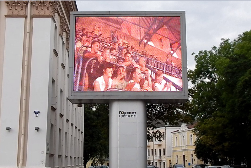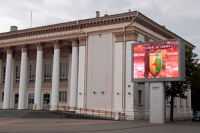 Находясь на центральной площади нашего красивейшего города, повернитесь лицом к Дворцу культуры Тексильщиков. Всего пару минут ожидания и на огромном экране перед вашими глазами пролетят жёлто-зелёные мгновенья счастья.