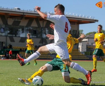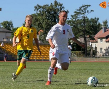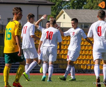 Матч начался для подопечных Юрия Хомко очень удачно – ошибка литовцев привела к тому, что Гамолко перехватил мяч и быстро доставил его Садовскому, который и открыл счёт уже на третьей минуте встречи. Литовцы были ошарашены таким началом, однако быстро пришли в себя и создали ряд очеь опасных моментов, благо сборную выручил вратарь Котов, дважды ликвидировав опасность после ударов Кубилинскаса. Второй мяч наши ребята провели после перерыва. Калинейко взял инициативу на себя, пошёл на троих защитников и точно пробил по воротам – 0:2!