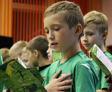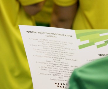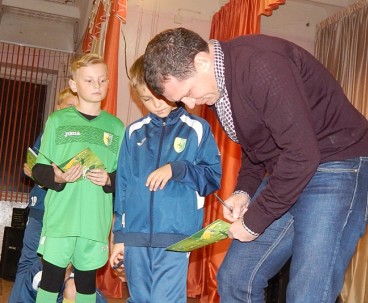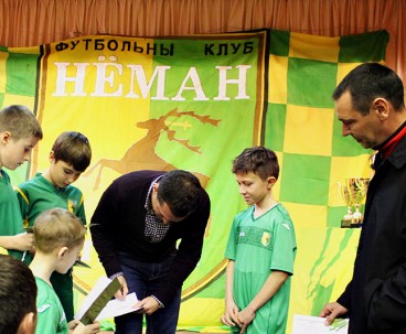 Однако самым памятным и долгожданным для ребят было выступление самого успешного выпускника нашей школы Сергея Гуренко, закончившего своё выступление ёмкой и важной фразой: «На футбольном поле нет авторитетов». В конце вечера юная жёлто-зелёная поросль дружно зачитала клятву неманца, после чего наступило время неформального общения.