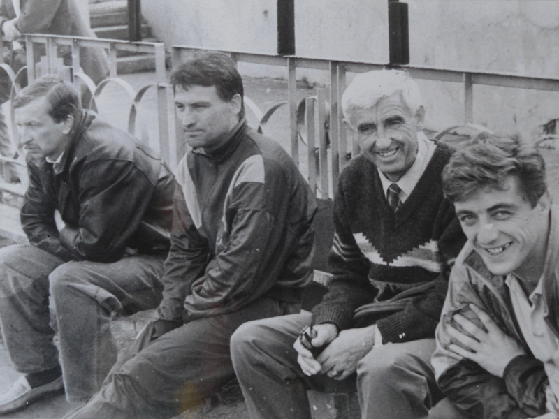 Когда мы пришли, то оказалось, что на просмотр. Всем процессом руководил тренер Глембоцкий. Занимались мы тогда на асфальтированной площадке возле касс. Видно приглянулись мы, потому как получили сразу гетры и кеды. Я с такой радостью прибежал домой, показал их маме и похвалился, однако мать отругала меня и топором разрубила и кеды, и гетры. Я расплакался и убежал из дома. Целую ночь плакал в сарае. Я не знал, как мне тренеру об этом сказать, как буду отдавать эти вещи, смогу ли заниматься футболом там… Просто у нас было домашнее хозяйство, и я всегда помогал маме, а она решила, что футбол будет этому мешать. Утром я прибрался по хозяйству и все-таки решил пойти на тренировку. Потом маму тренера уговорили, сказали, что я способный и буду успевать тренироваться и помогать дома.