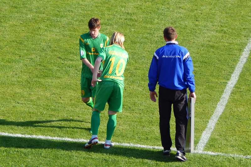 Не успели заменить Концевого... Нервы не выдержали у нашего нападающего и он пошёл выяснять отношения с судьёй после своего же фола. Вторая желтая карточка и Артём пропустит следующий матч против БАТЭ.