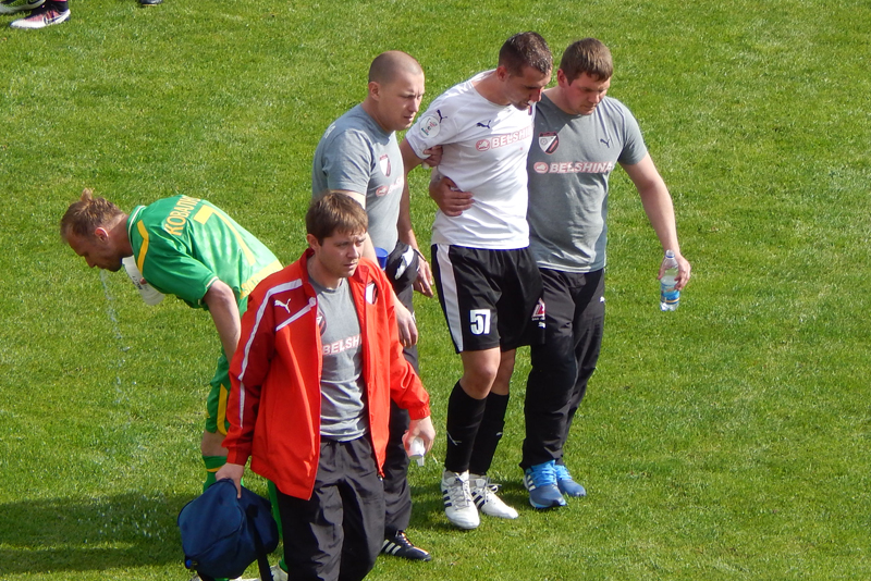 В столкновении с Концевым и Бомбелем травму получил Гречишко. Вместо него на поле вышел Афанасьев. У Гречишко сломан нос?