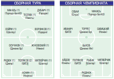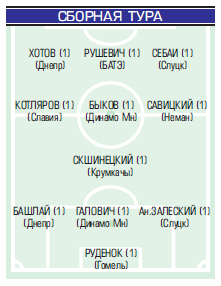 Руслан Зубков (1-е попадание) и Валерий Жуковский (1-е попадание) попали в сборную тура football.by (мнение журналистов).