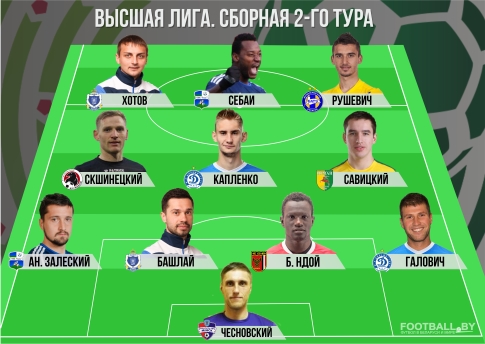 Вратарь – Павел Чесновский (Минск), защитники – Андрей Залеский (Слуцк), Дмитрий Башлай (Днепр), Биран Ндой (Славия), Нино Галович (Динамо-Минск), полузащитники – Александр Скшинецкий (Крумкачы), Никита Капленко (Динамо-Минск), Павел Савицкий (Неман), нападающие – Мурат Хотов (Днепр), Сенин Себаи (Слуцк), Анес Рушевич (БАТЭ).