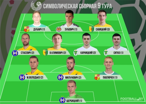 Два представителя гродненского клуба попали в сборную 9-го тура, которая была составлена исходя из мнения журналистов интернет-ресурса football.by. На этот раз компанию Павлу Савицкому (3-е попадание) составил Владислав Климович (2-е попадание).