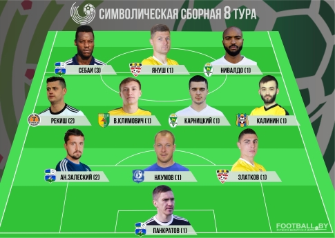 В сборную football.by по итогам восьмого тура чемпионата попал только один представитель нашего клуба Владислав Климович (1-е попадание).